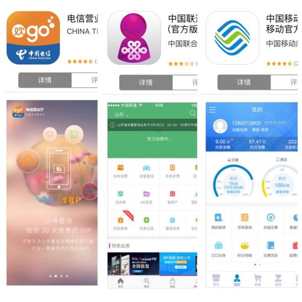 3. 三大運營商(電信、移動、聯通)自己開發的應用。黨組書記對 UI 設計亦有貢獻。